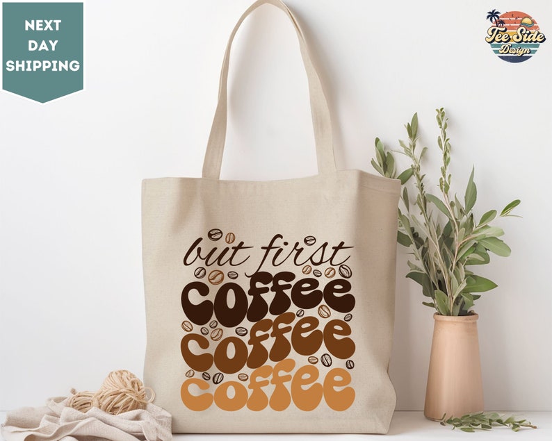 But First Coffee Coffee Coffee Tote Bag, Coffee Lover Tote Bag, Coffee Addiction Tote Bag, Coffee Lover Gift for Her, Gift For Mom