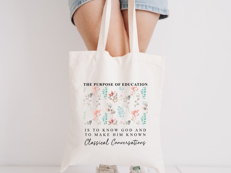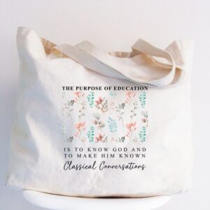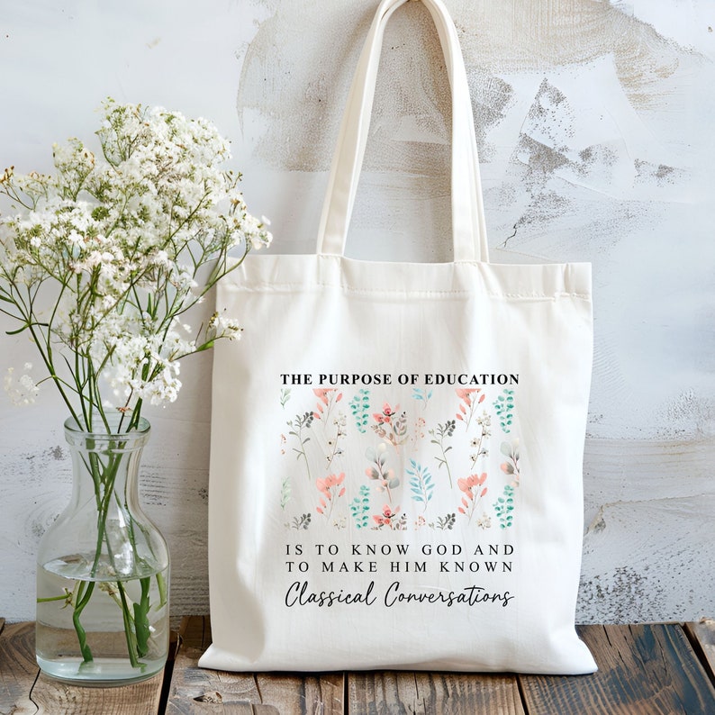 Floral Classical Conversations Christian Tote Bag, Religious gift Women Bags, CC Homeschool Totes, Boho Bible Verse Bag, Reusable Faith Bags