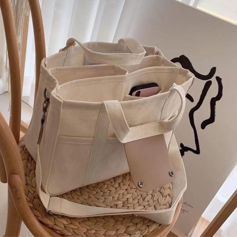 Multi-pocket large capacity tote bag, perfect for those on-the-go moments when you need to carry a little bit of everything. This versatile bag features multiple compartments to organize your belongings with ease—perfect for busy moms, professionals, or travelers alike. The durable canvas material ensures longevity, while the stylish design makes it an ideal accessory for any outfit. Whether you’re heading to the office, running errands, or embarking on a weekend getaway, this tote bag has got you covered with both functionality and flair.